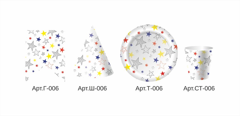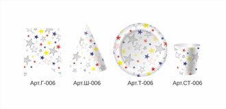 Праздничный набор на 6 персон (Тарелка D=230мм, стакан 250 мл, колпак, флажки 6 шт. )