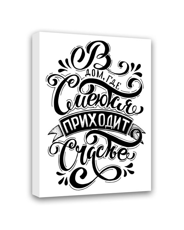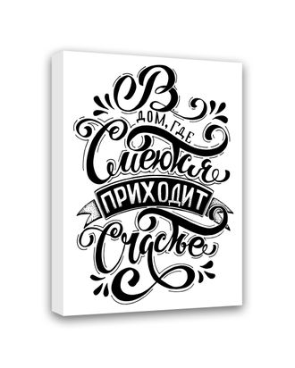 Картина-мотиватор на деревянном подрамнике "В дом, где смеються приходит счастье", 100 % полиэстр