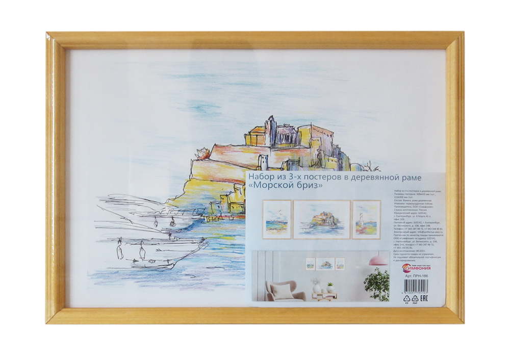 Набор постеров в раме из 3 шт., дерево, ПРН-186