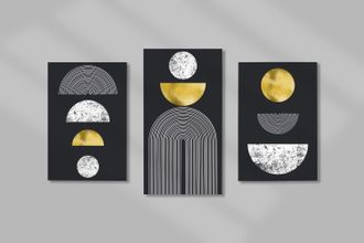 Модульная картина на деревянном подрамнике "Абстракция черные луны" 3в1