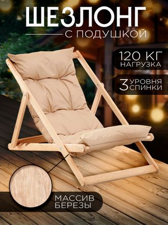 Кресло-шезлонг "Элит" складной деревянный/мягкая сидушка