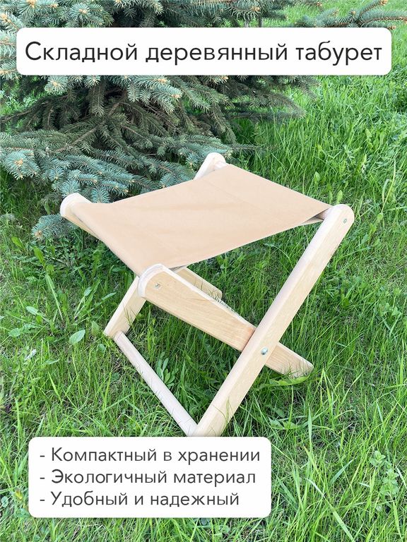 Табурет складной деревянный/тканевый складной, цвета сидушки в ассортименте