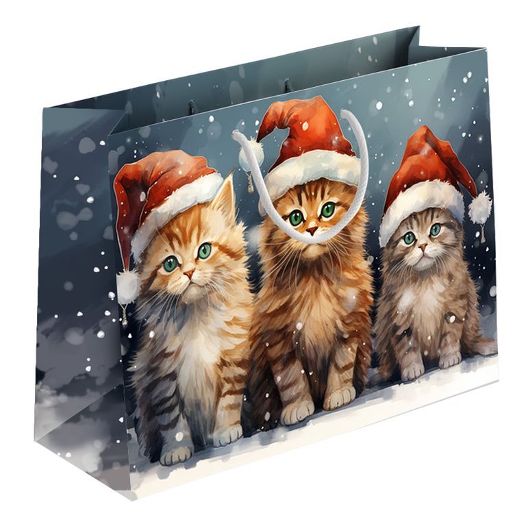 Пакет подарочный "Новогодние шапочки", 21х30х14